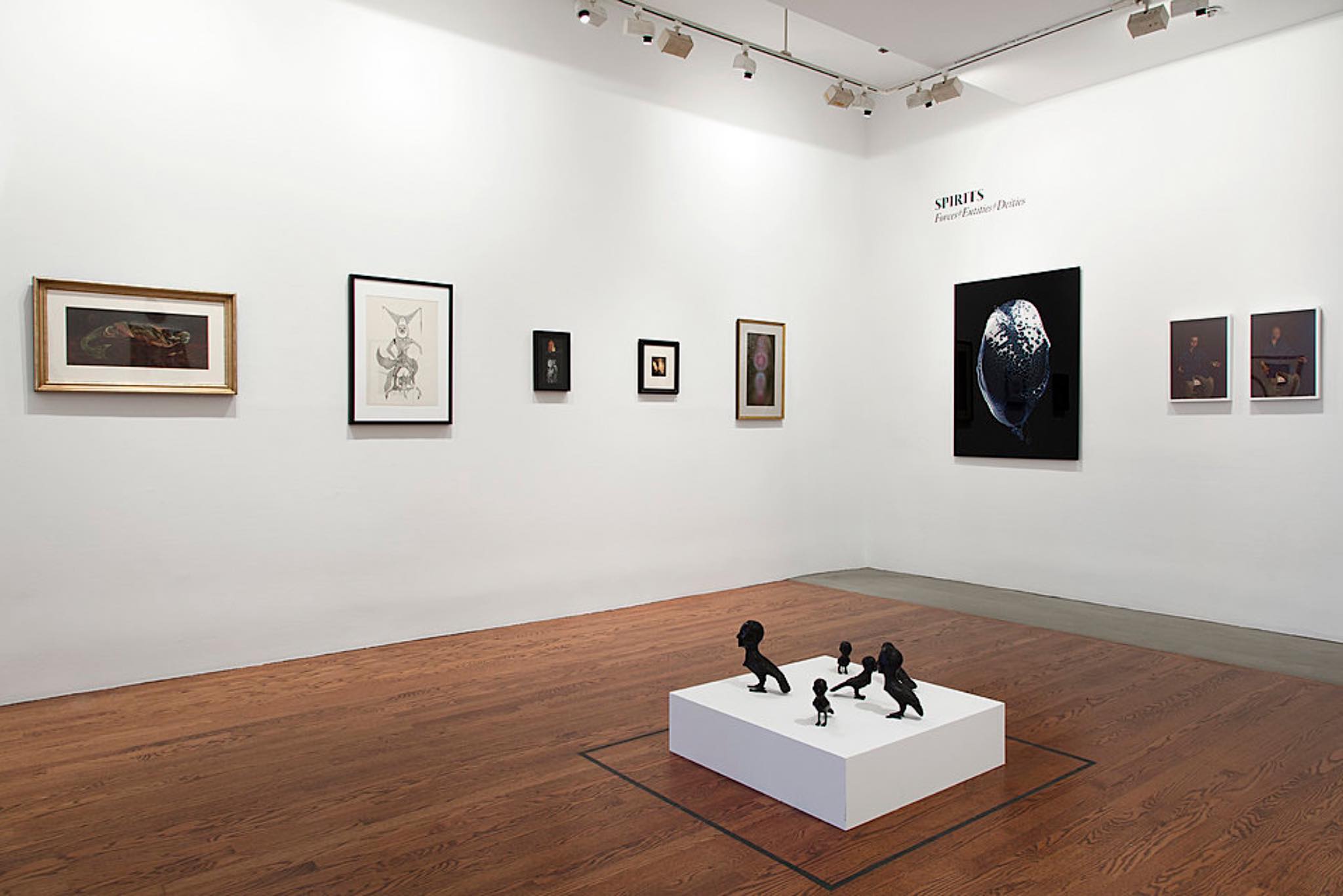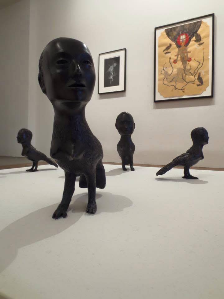 Works by KIKI SMITH, DARCILIO LIMA (2nd from left) and others in “The Language of Birds” exhibition curated by Pam Grossman at 80WSE Gallery in New York City, January 2016.